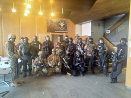 Auf den ersten Blick kommt unser Auftreten dem Militär sehr nah, es dient jedoch einzig und allein dem Zweck des Spieles. Hinter der Maske verbergen sich begeisterte Airsoftsportler.